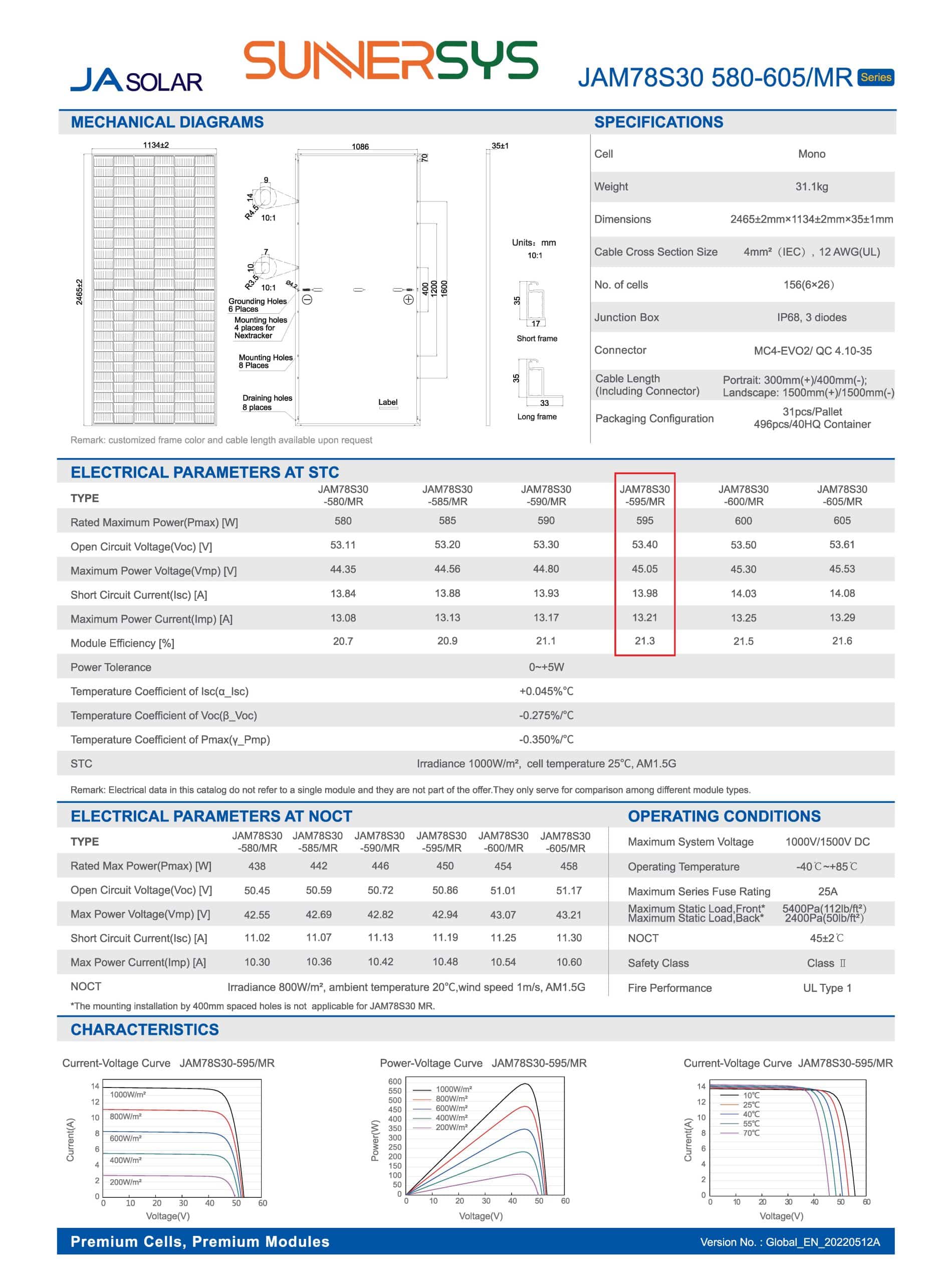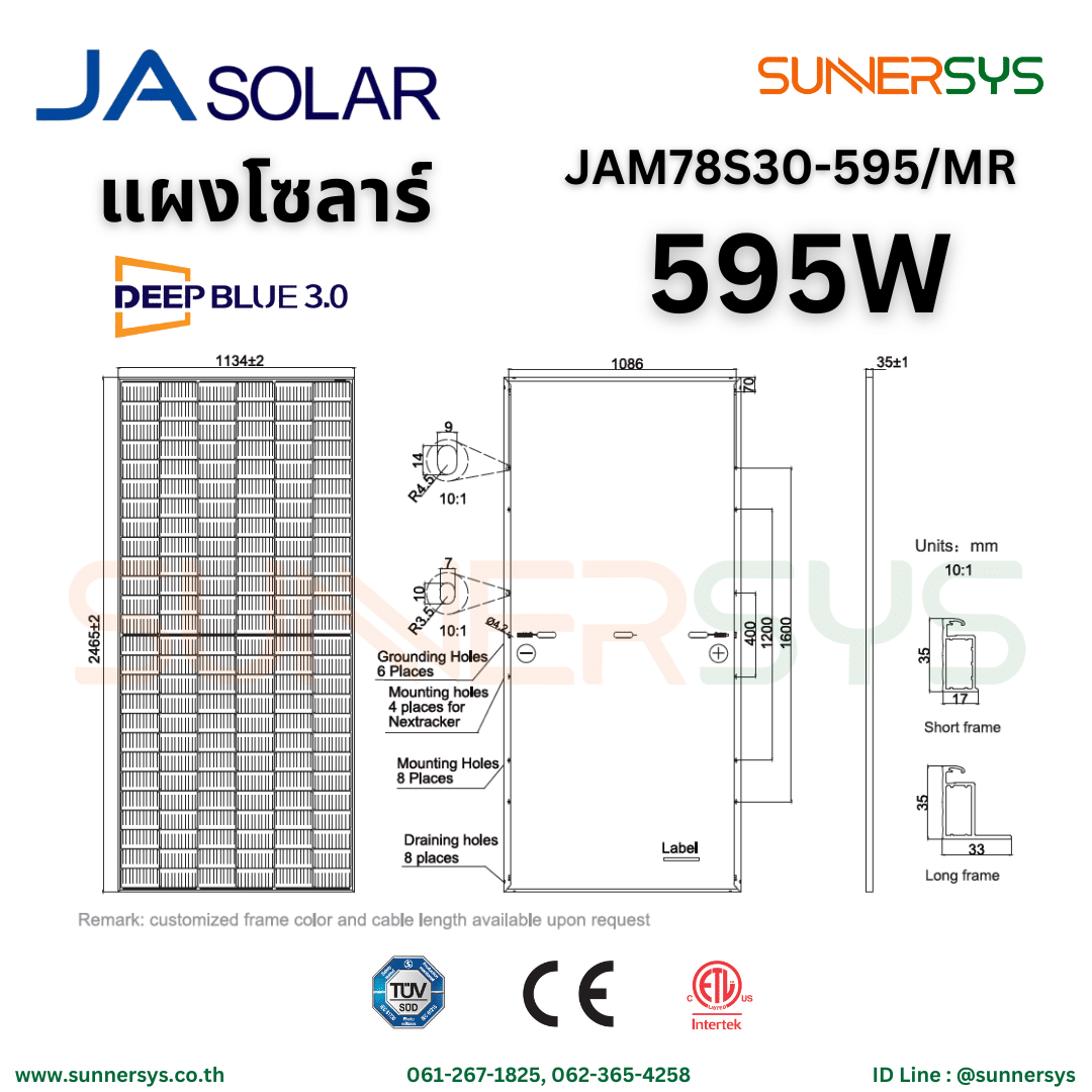 • เทคโนโลยีเซลล์ : p-type โมโนคริสตัลไลน์, กระจกด้านเดียว