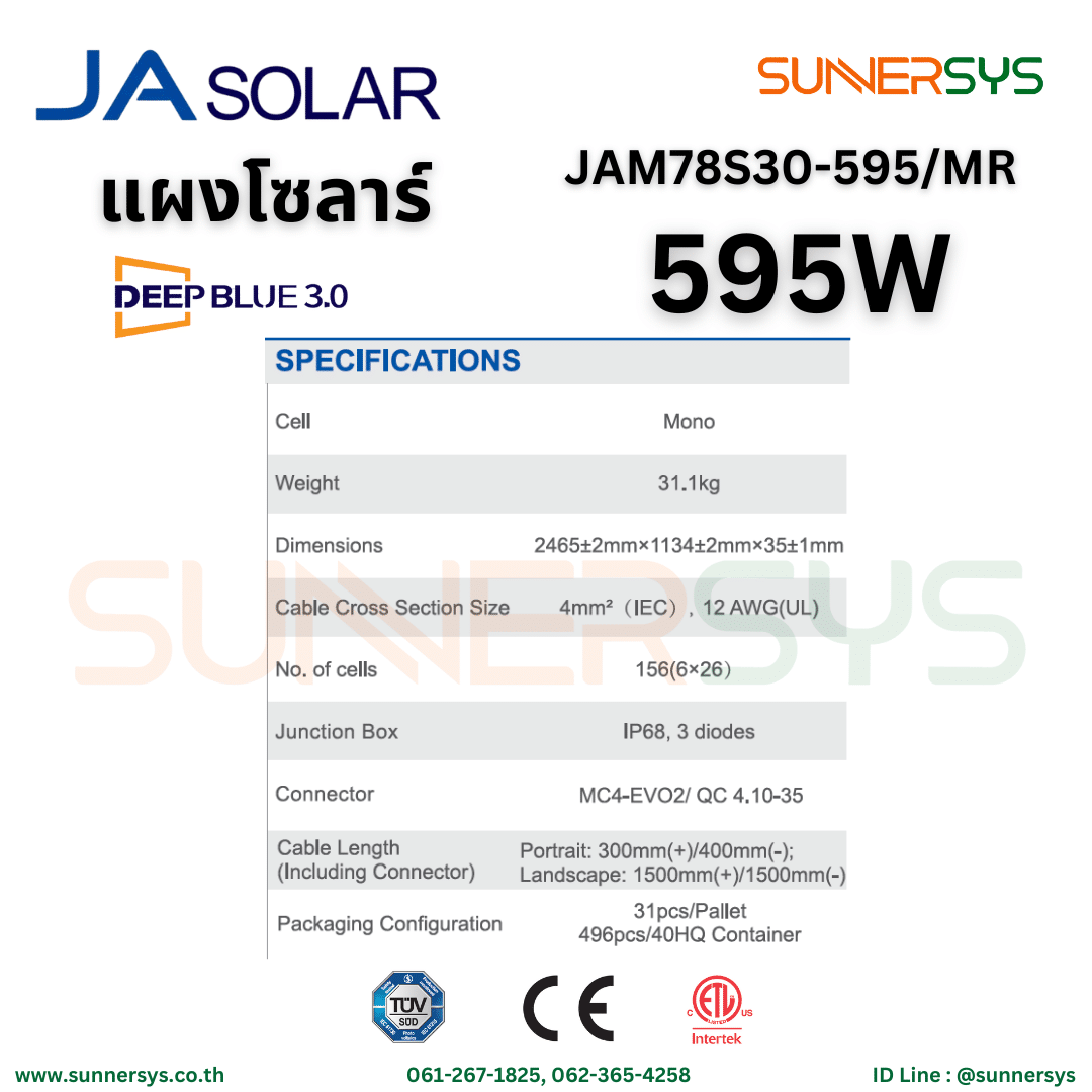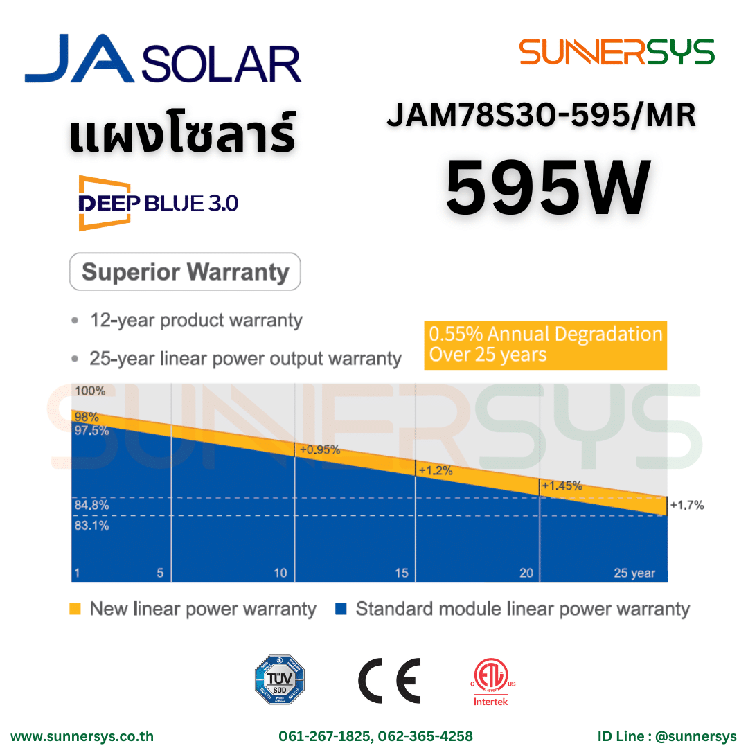 • การรับประกันประสิทธิภาพ : 25 ปี