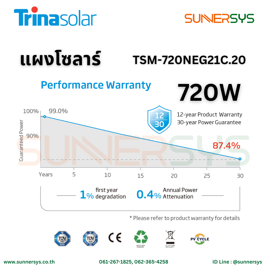 - การรับประกันประสิทธิภาพ : 30 ปี