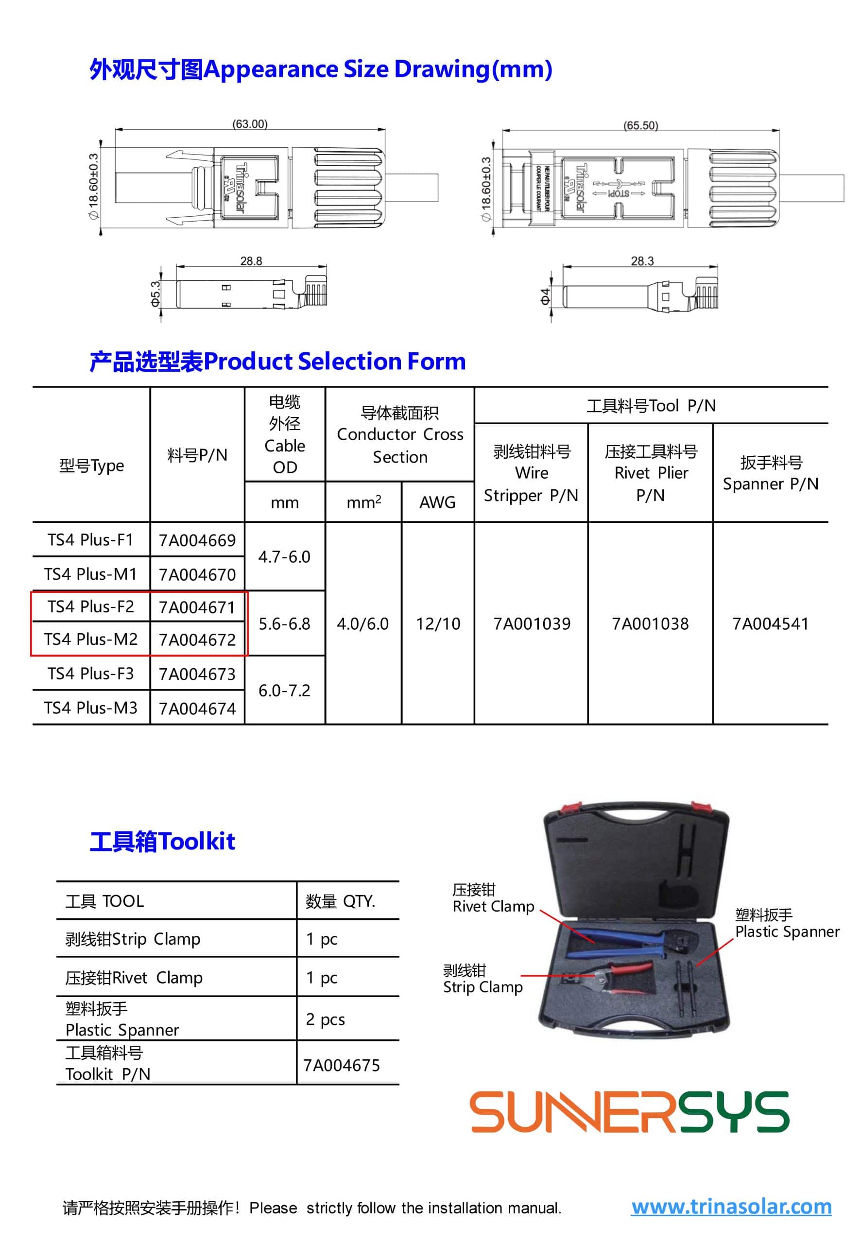 หัวต่อ TS4 Original Trina Solar รับแรงดันสูงสุด 1500V มาตรฐาน IP68 กันน้ำได้ 100%